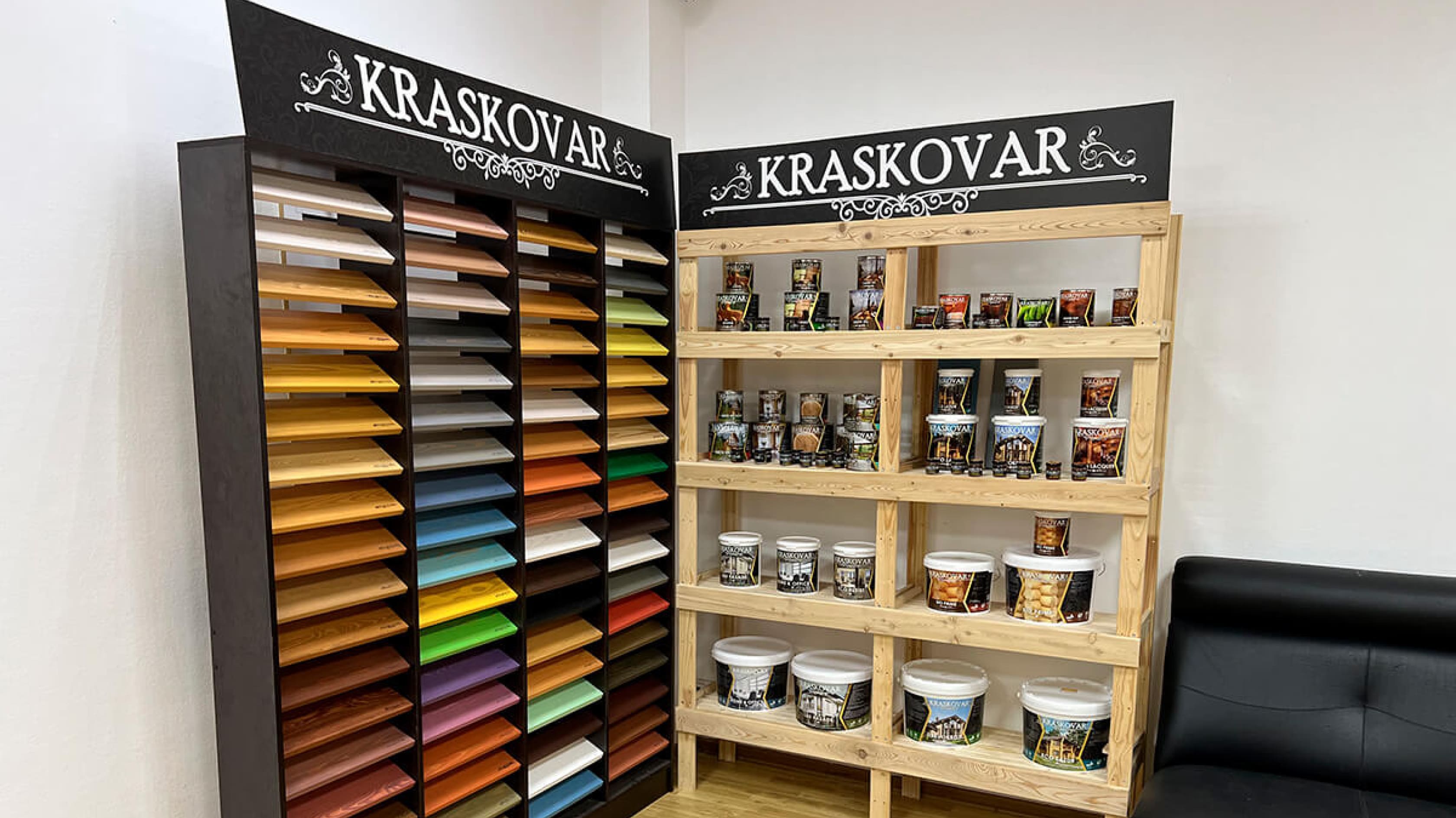 В нашей работе мы используем лакокрасочные материалы собственного производства под брендом Kraskovar.